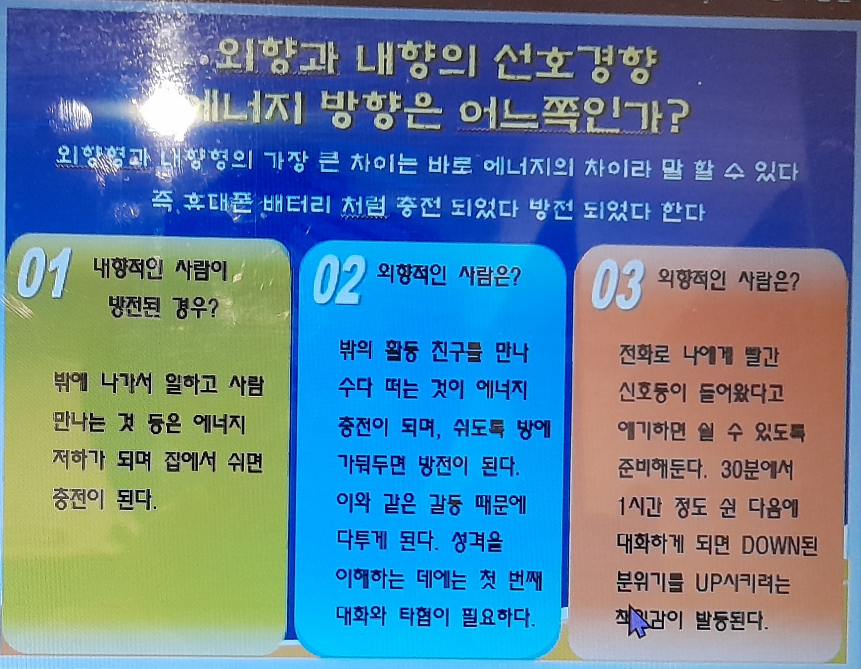 인생 반 좀 못되게 살아오고 있지만 아직도 상대방을 모르고 살다가 싸우거나 전화를 안받거나 아예 번호를 블록 처리해서 난감해 본 적이 있으셨나요? 저도 마찬가지로 서로 다른견해로 이러한 경우를 겪으며 살기도 하더라구요. 우연한 기회로 좋은 분과 알게 되고 무료로 줌 수업을 받게 되었어요. 관계에서 난 어떤 성격의 사람인지 아시나요? 제 검사결과지는 INFP-T 로 열정적인 중재자로 나왔어요. 나를 알면 백전백승 인거 아시죠? 성격도 마찬가지고 내 반려자, 내 아이들의 성향도 미리 알아둔다면 좋은 관계를 맺지 않을 까 싶어 포스팅 해 봅니다.